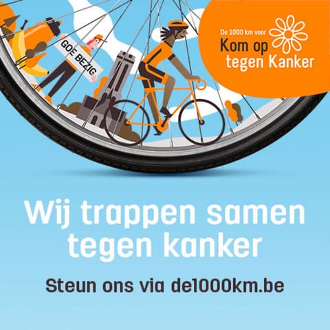 Tijdens het Hemelvaartweekend van 2025 (29, 30 en 31 mei en 1 juni) fietsen Jolien, Catherine en nog enkele teamleden mee met de 1000 km voor Kom op tegen Kanker. Lees hier meer over dit initiatief.